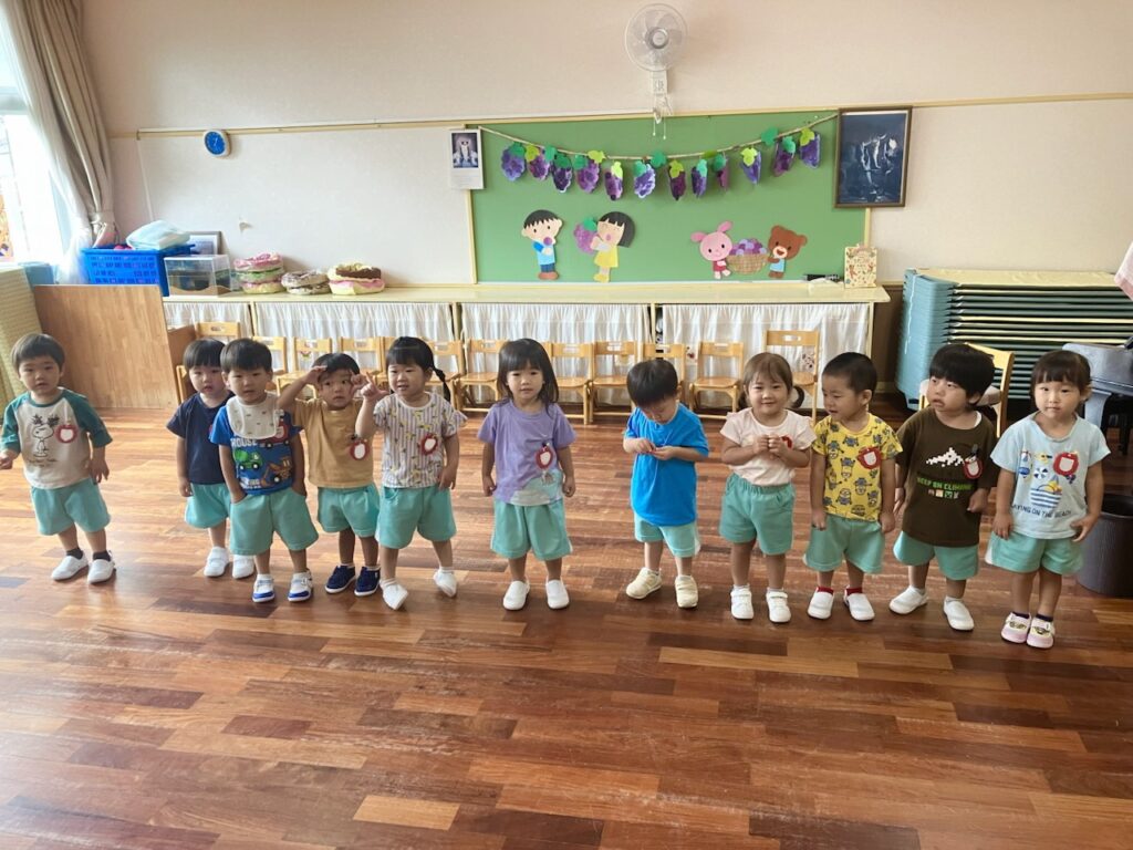 金曜日には、9月生まれの子どもたちの誕生会がありました!9月生まれのお友だちや先生がたくさん並び、とても賑やかな会となりました。