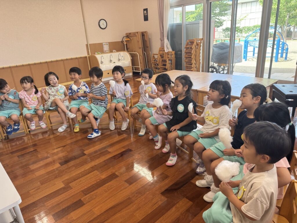 「わたがしだ~!!」と大喜びのみんな♡