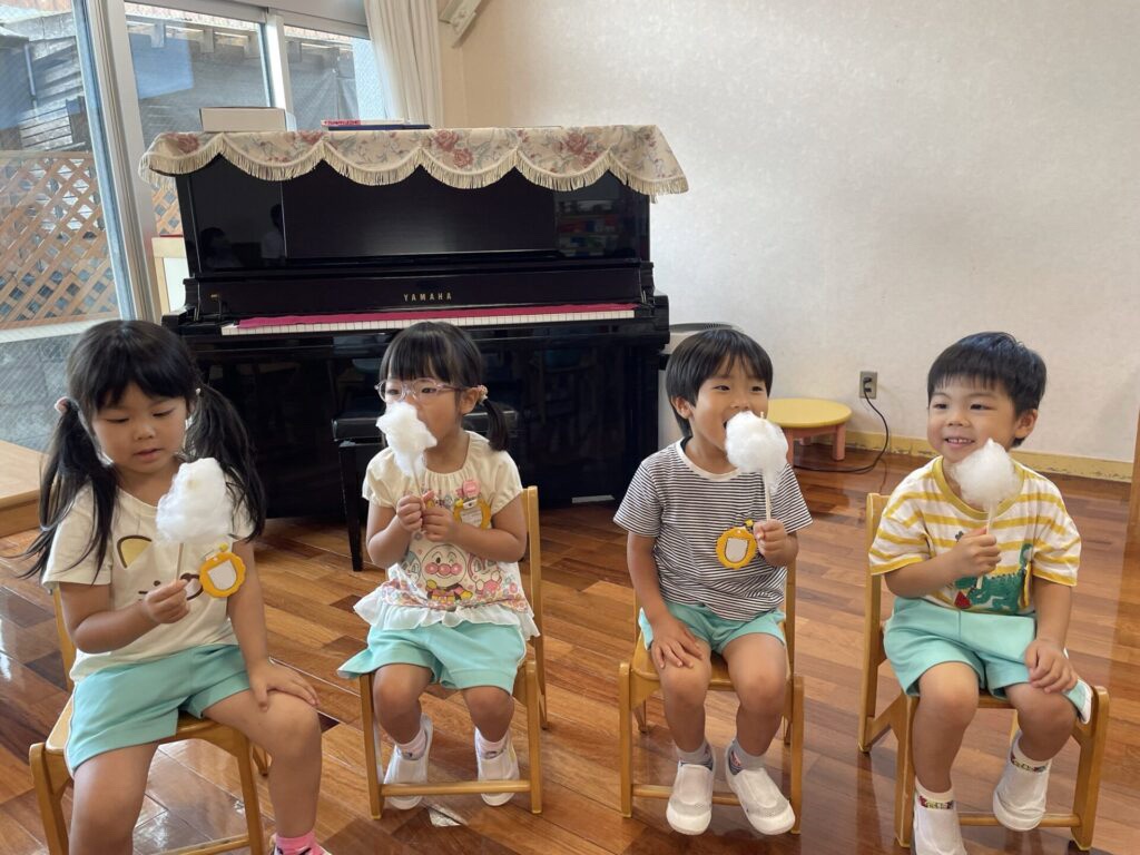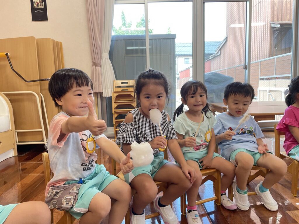 のびのびクラブの小さなお友達を招待したお礼に、千葉先生がお手紙を書いてくださいました。読んでみると、綿菓子をごちそうしてくださるとのこと☆ 「本物かな?」とワクワク!大喜びで過ごす姿がなんとも微笑ましかったです。そして、綿菓子を食べているときの幸せそうな顔は、なんとも可愛い!