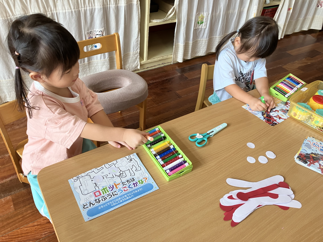 トンボの制作に挑戦!のりとクレヨンを使って可愛いトンボができあがりました♪