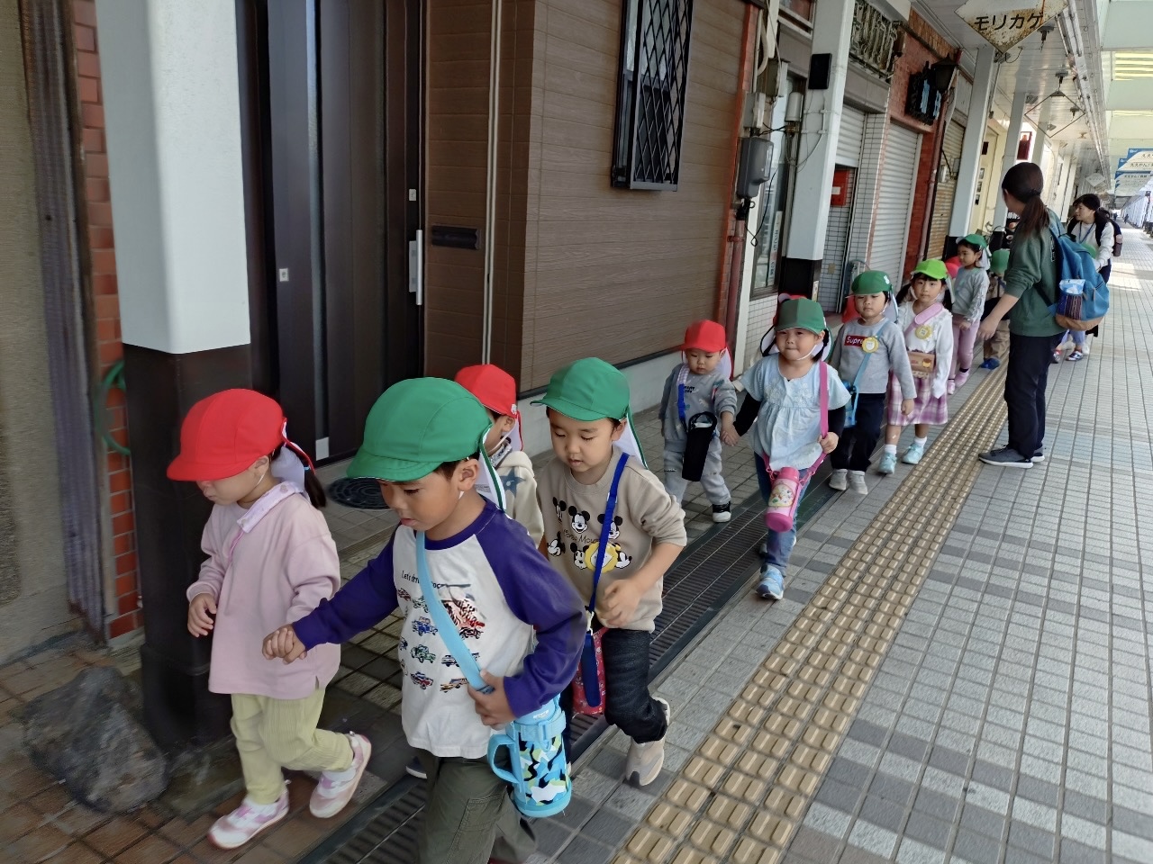 一緒に手を繋いでもらい、アーケード通りでは色々なお店を見つけて会話も弾みます。