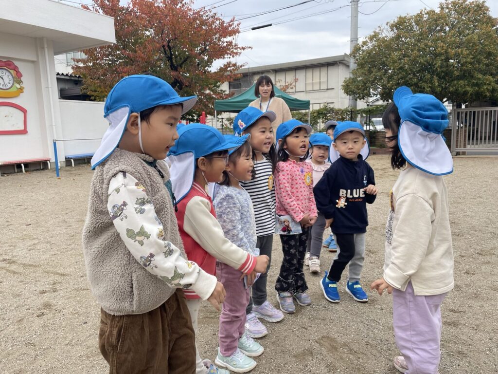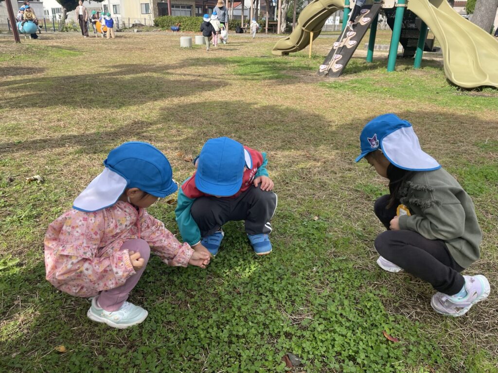 ことり組さんと旭公園まで園外保育に出かけました。だるまさんが転んだをしたり、遊具で遊んだり秋晴れの心地の良い気候の中、伸び伸びと遊びました。