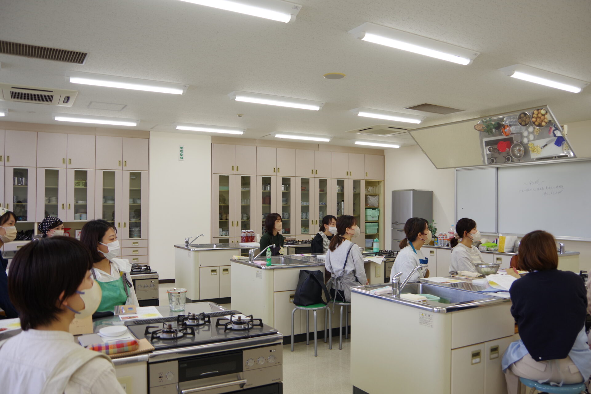 調理実習や試食の時間では、各テーブルで会話の花が咲き、