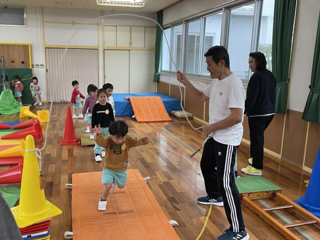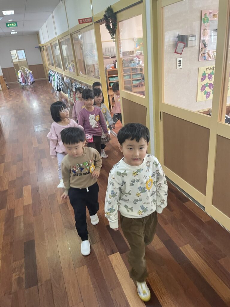 今週は運動遊びもありました。今回は午後から行いました!進級・入園当初よりだいぶ体力もつき、午後からでも時間いっぱい大好きなモリモリ先生と一緒に楽しい時間を過ごす姿に頼もしさを感じました。最後はご挨拶!いつもの「ありがとうございました」だけではなく、年末のご挨拶も…「今年も1年ありがとうございました!来年もよろしくお願いします!」と元気にお話していました。1年が経つのが早いです…
