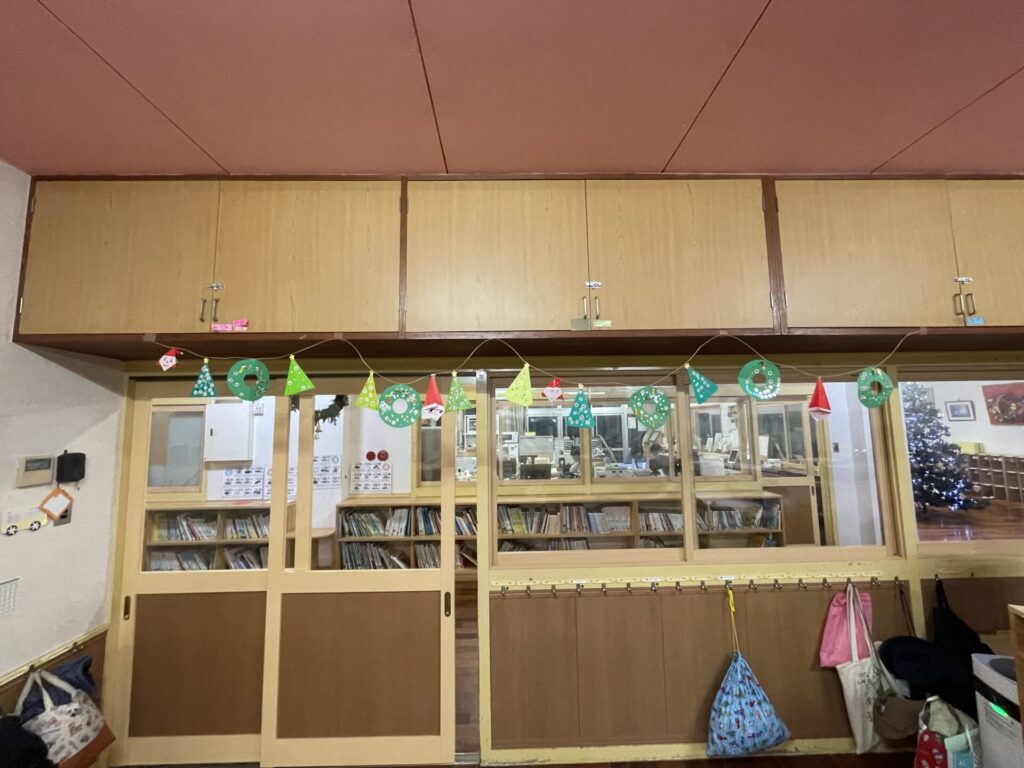 クリスマスソングを聞きながら、ステンドグラス風の飾りや折り紙とシールを用いた飾りを沢山作り、楽しんで1日1日を過ごしています。