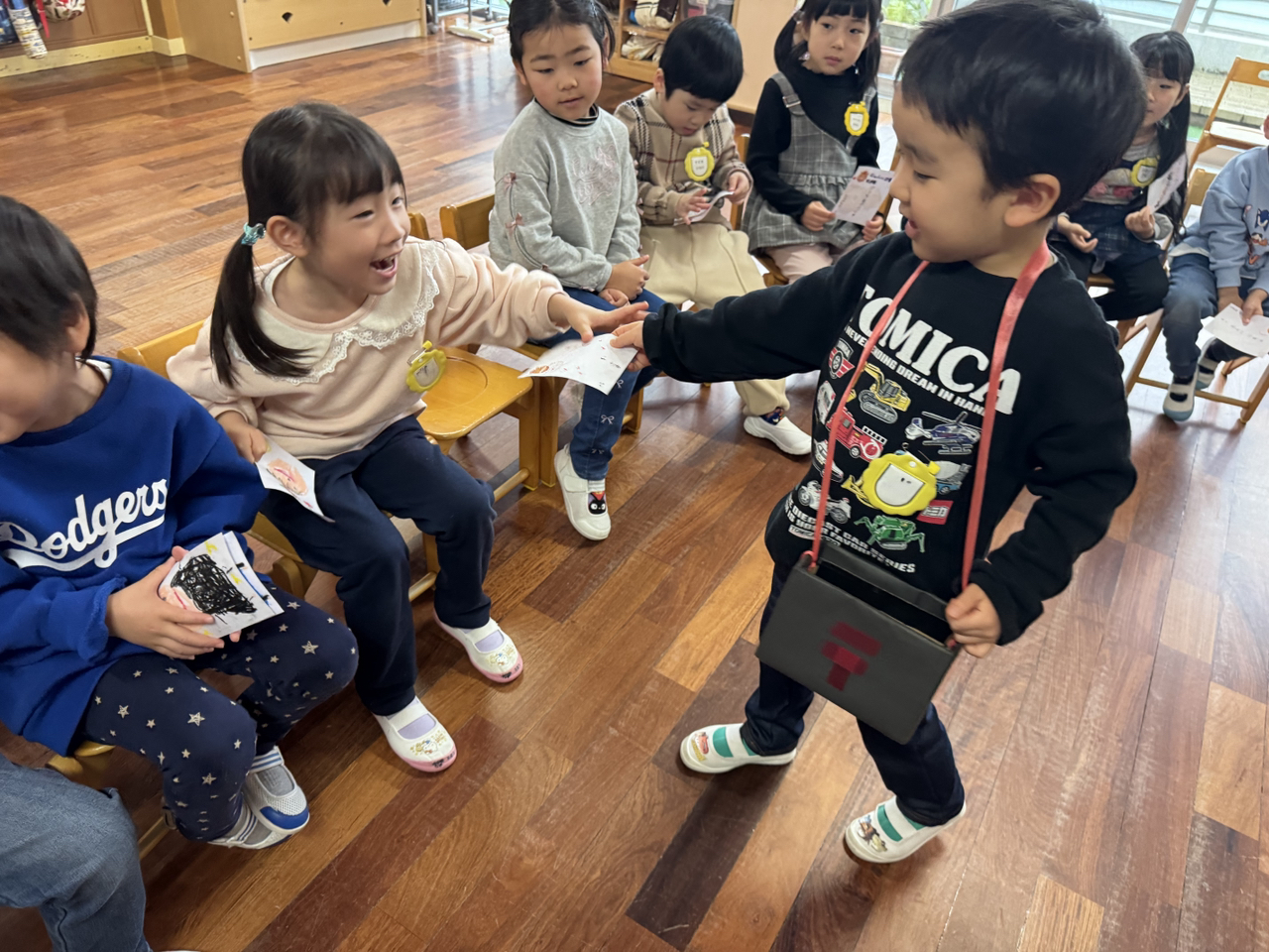 「どうぞ~」「届きましたー!」
