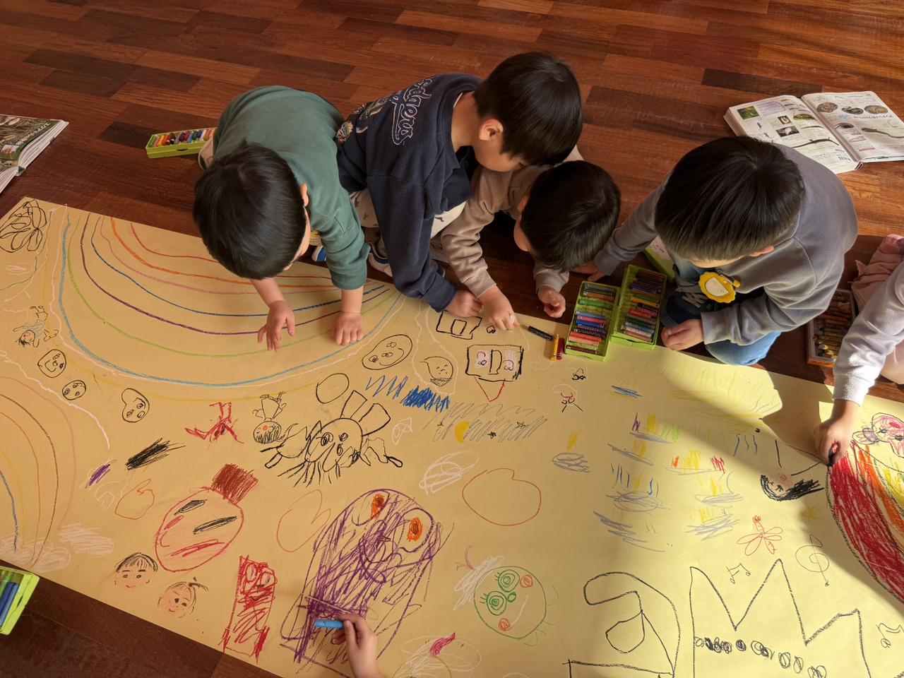 模造紙に好きな絵を伸び伸びと描いたり