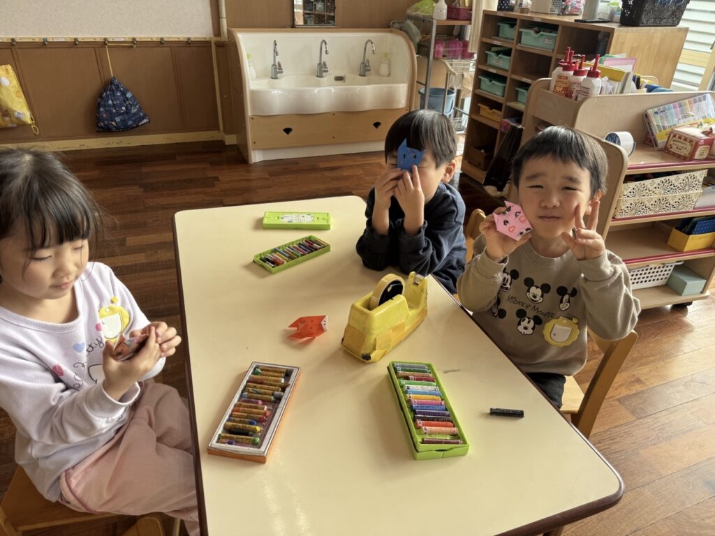 折り紙で色々な物を作ることり組さん。