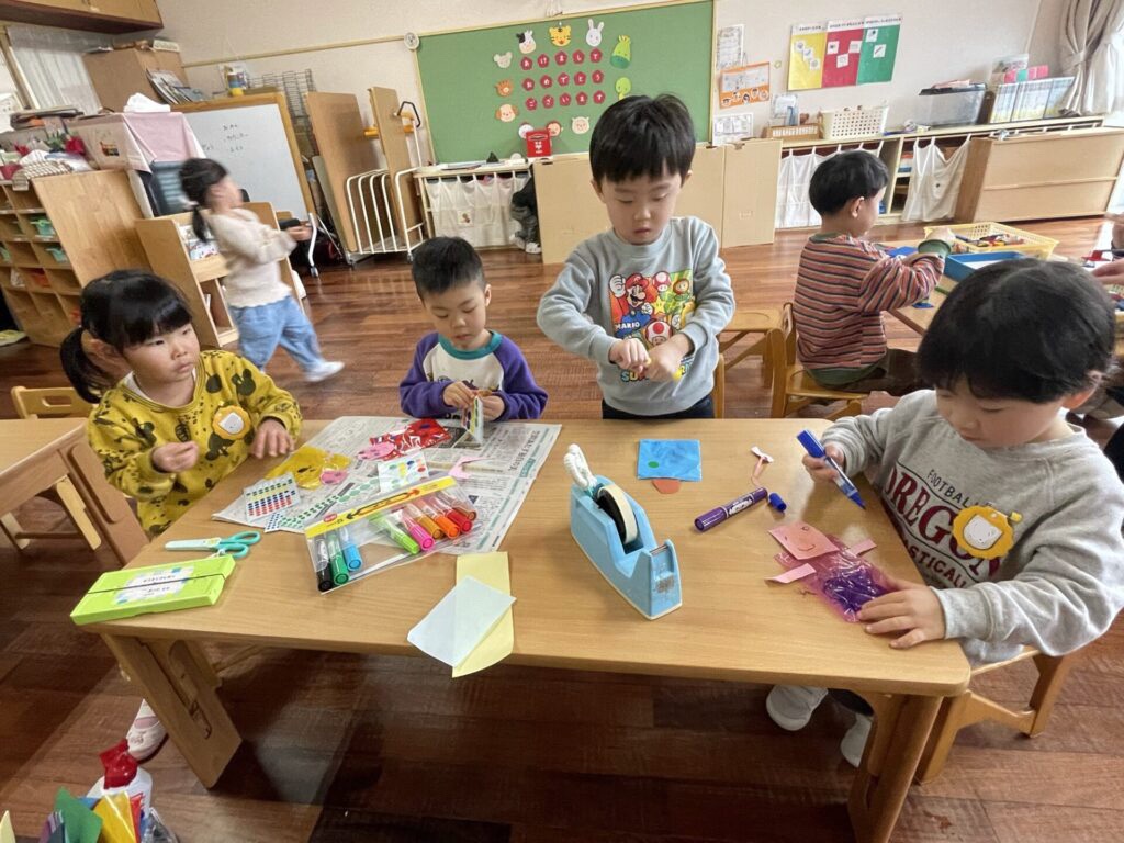 さっそく制作開始!作ったものを用いて、ごっこ遊びを楽しむ様子が見られました。