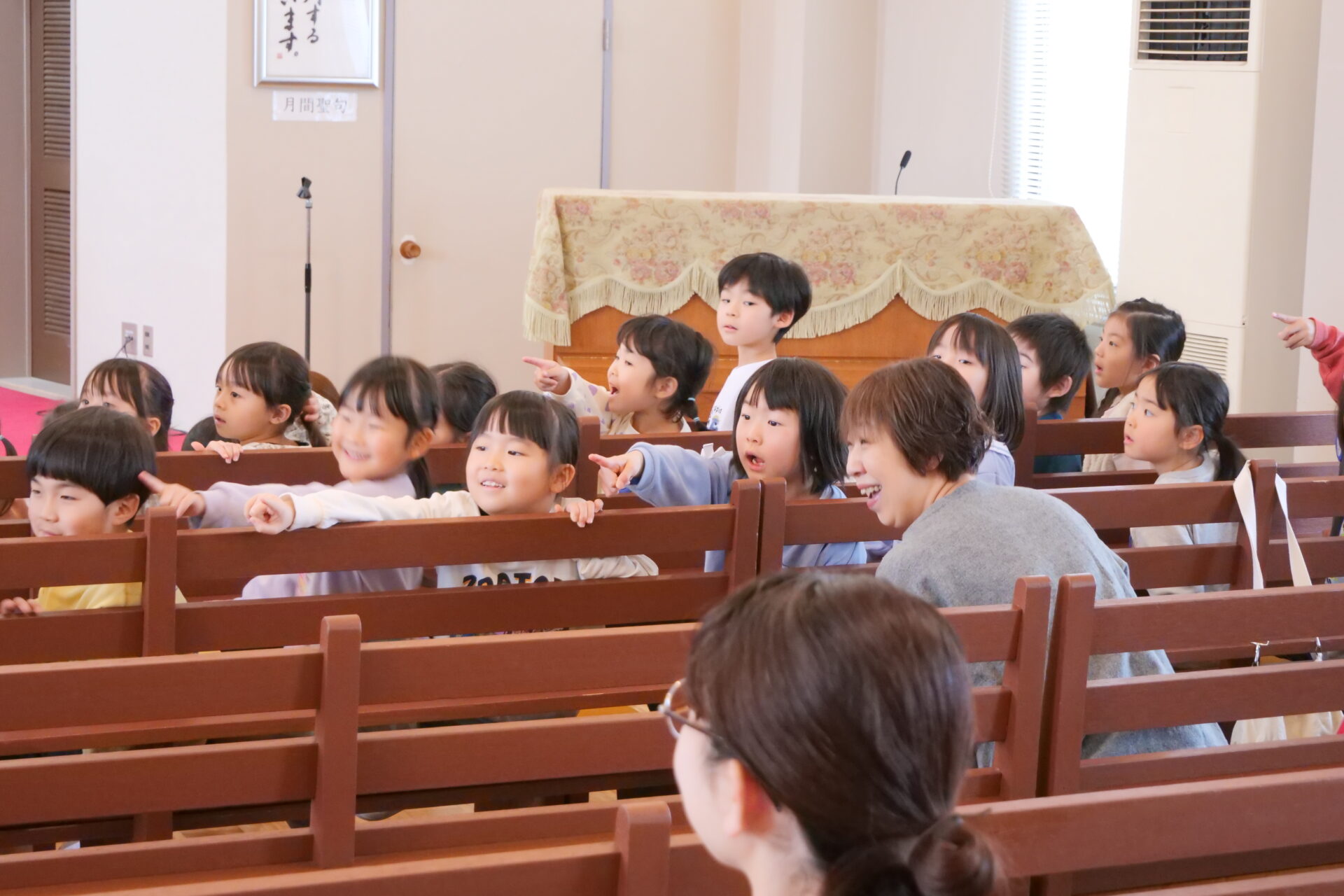 礼拝堂にみんなが集まり、