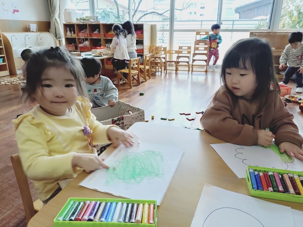 粘土やお絵描きなどじっくりと集中して遊ぶ様子が見られます。