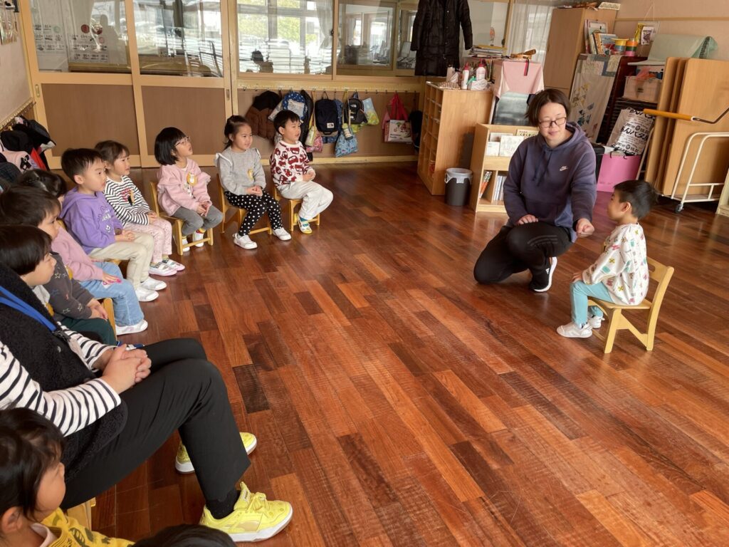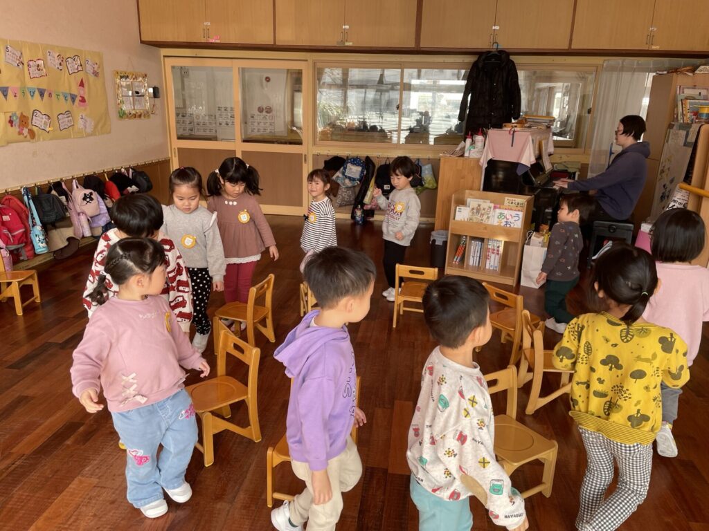 みんなでミニゲームをしました!「何をしたい?」と子どもたちに尋ねると「椅子取りゲーム!」「なんでもバスケット」と声が上がり、久しぶりに椅子取りゲームをしました。「チャンピオンになる!(最後まで残るぞ!)」と真剣な様子… 最後に、チャンピオンのインタビューを行いましたが、その言葉を聞いてた上で、なお「負けても、楽しかった!」と言える姿に大きな成長を感じました。