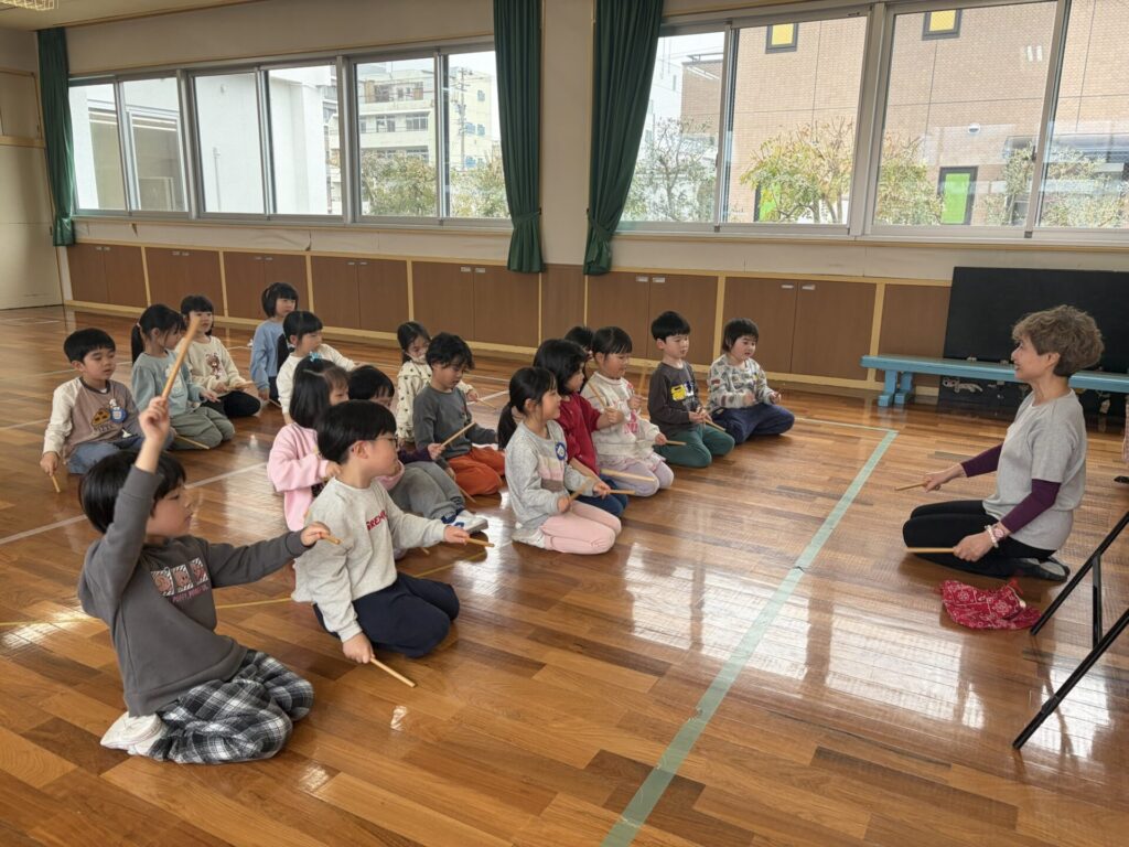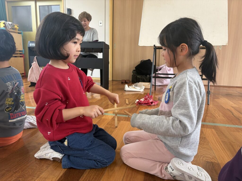リズム打ちをする活動では、