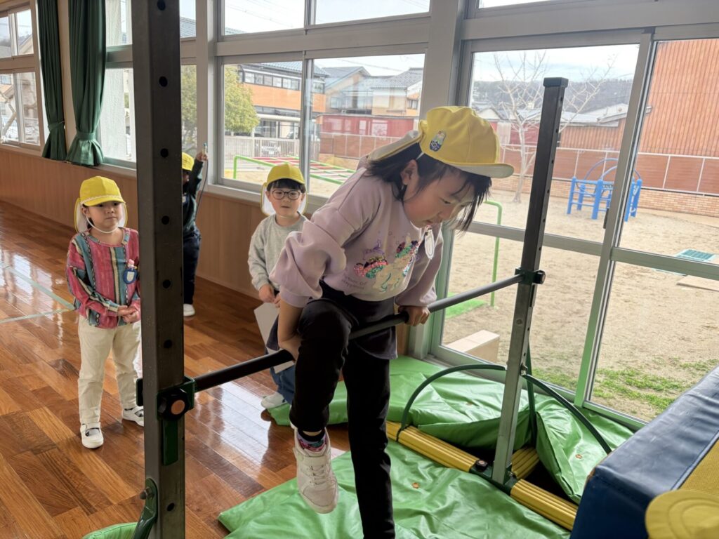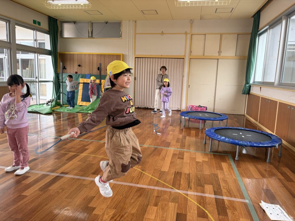 チャレンジタイムには鉄棒、縄跳び、
