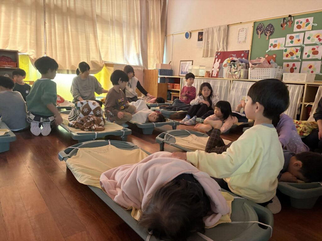 お昼寝のお手伝いをしたり、
