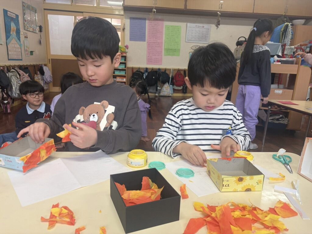 / 染め紙をちぎって丁寧に箱に貼っていくと…?\